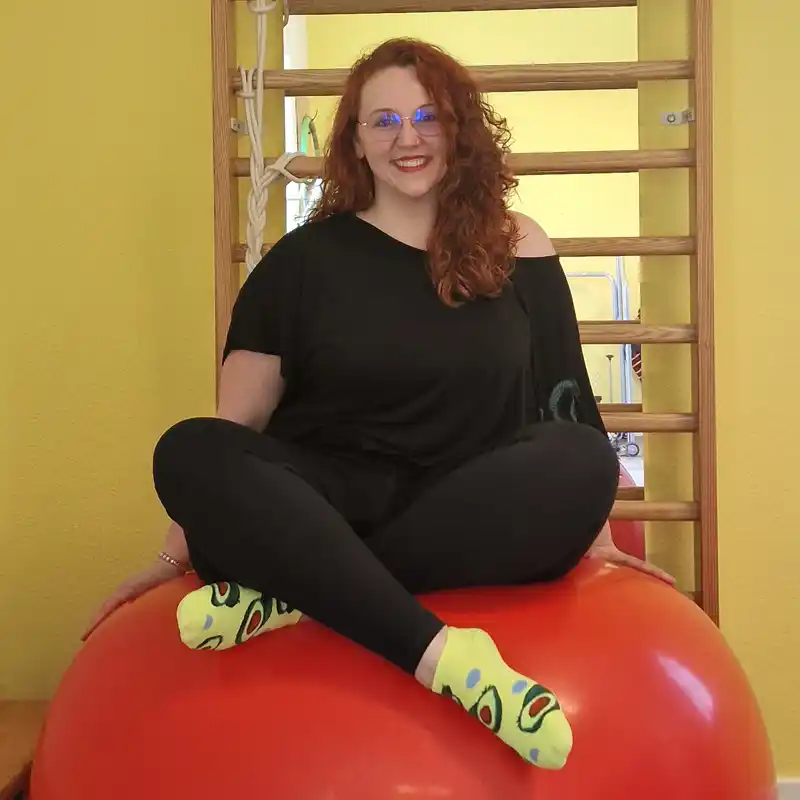 In meiner Arbeit mit Kindern lege ich größten Wert darauf, dass meine kleinen Patienten sich bei mir wohl fühlen und Spaß an der Behandlung empfinden. Dafür setze ich beispielsweise auch den großen Therapieball nach Quinten in der Behandlung ein.